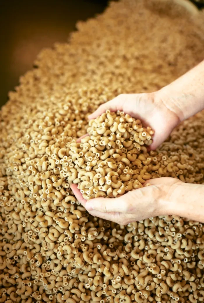 Dass so eine Umstellung nicht von einem Tag auf den anderen vonstatten geht, kann man sich vorstellen. Zuerst verschwanden die Kühe vom Hof, später dann die Schafe. Dafür wurden erste Maschinen zum Entspelzen angeschafft, die die Verarbeitung des Dinkels erheblich erleichterten. „Anfangs hat die Mama die ersten Nudeln noch bei uns in der Küche gemacht“, erinnert sich Andreas an die Zeit, als Verkauf und Produktion noch in der eigenen Wohnung passierte. Mit dem steigenden Interesse wurden auch die Maschinen immer größer, bis 2016 die Produktion und die Trocknung schlussendlich durch einen Neubau ausgelagert wurden.