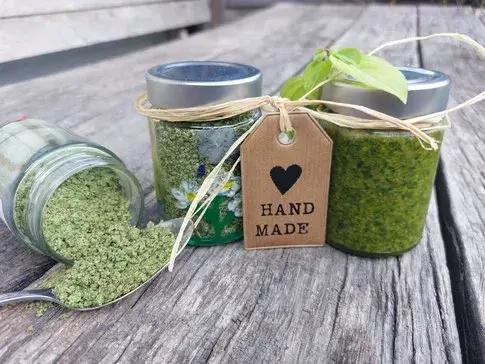 Ende September/ Anfang Oktober ist ein guter Zeitpunkt alle Kräuter noch einmal kräftig zu schneiden und zu verarbeiten. Ein Teil, besonders der Majoran und die Petersilie, werden getrocknet, um sie im Winter als Würze für unsere Leberknödel zu benutzen. Aus einem anderen Teil mache ich Kräutersalz, das vielseitig in der Küche eingesetzt werden kann und mit dem letzten Teil kreiere ich Kräuterpesto, das ich gerne in Nudeln für die schnelle Küche oder in den verschiedensten Brotkreationen verwende. Da sind der Kreativität keine Grenzen gesetzt. Kräuterpesto und Kräutersalz eignen sich auch hervorragend als kleine selbstgemachte Mitbringsel. Ich hoffe, auch ihr könnt den Duft der Sommerkräuter einfangen und genießen und vielleicht sehen wir uns ja einmal bei einem der wunderbaren Kurse unserer Salzburger Seminarbäuerinnen.
