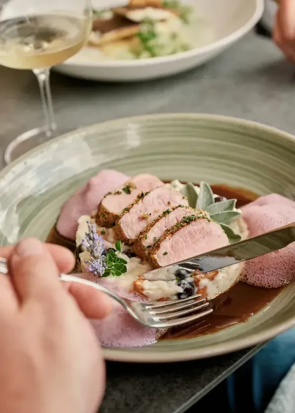Apropos probieren und kennenlernen: Im Luke’s kann es gut sein, dass auch mal etwas aus ist. Schließlich wird hier alles vom Tier verarbeitet. Ist eines verwertet, kann es schon mal dauern, bis das nächste ins Haus kommt. Gut so, denn: „Lebensmittel sind kein Massenprodukt. Ich denke, wir müssen wieder lernen, dass wir nicht alles 24/7 haben können. Ein bisschen Verzicht ist oft nicht schlecht“, findet der Gastronom. „Dann ist einerseits der Genuss viel größer und, wenn das Lieblingsgericht aus ist, lernt man andererseits etwas Neues kennen.“ Statt Steak gibt es dann vielleicht einfach mal die Tiroler Alpengarnelen oder Empanadas. „Oft haben unsere Landwirt:innen auch Produkte, die sie nicht weiterverwenden können, Knochen zum Beispiel. Ist das der Fall, nehmen wir diese. Dann gibt es bei uns im Restaurant eben verstärkt Suppe.“ Man passt sich an – sowohl in der Küche, als auch am Esstisch. Etwas Schlechtes ist das nicht, ganz im Gegenteil. „Wir bekommen durch das Prinzip, wie wir es in Luke’s Wohnzimmer haben, wieder einen ganz anderen Bezug zum Essen. Die Wertschätzung gegenüber den einzelnen Lebensmitteln ist viel höher“, ist Lukas Sendlhofer überzeugt.
